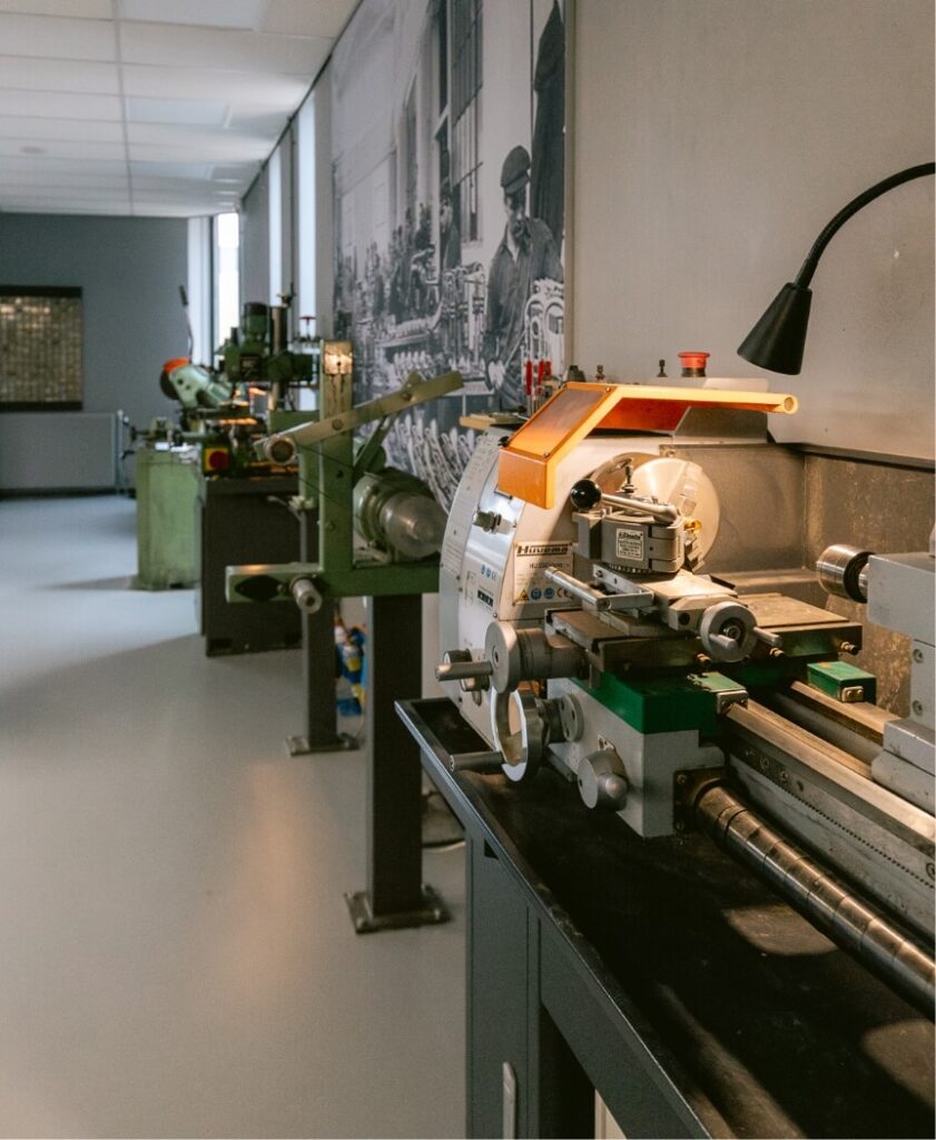 We frezen eerst het gebroken toongat weg, op 5 duizendste millimeter nauwkeurig. Het ‘oude’ toongat wordt dieper gevreesd, zodat we er een nieuwe bus in kunnen zetten. De bus draaien we op de draaibank precies op maat. Nadat we de bus erin hebben gelijmd, frezen we het nieuwe toongat op de juiste maat. Het toongat is klaar. Kleppen monteren, afstellen en doorspelen. Klaar om nog vele jaren bespeeld te worden!